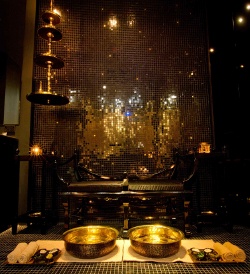 Black and gold are the main themes in the Pañpuri design which centres on a sense of luxury and elegance, the photos definitely give a strong sense of opulence while retaining a very tranquil setting. The key colours in the design were chosen because black suggests mystery and gold visualises the opulence of this luxurious and refined experience.